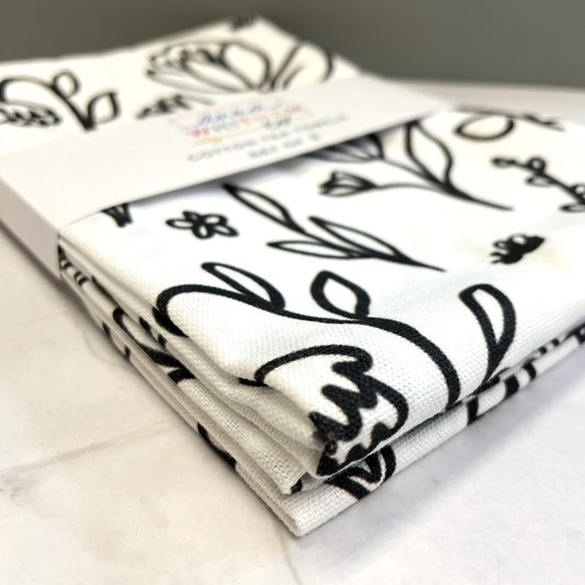 Tea Towel - Black and White Floral