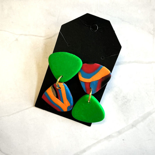 Green and Orange Triangle Drop Earrings