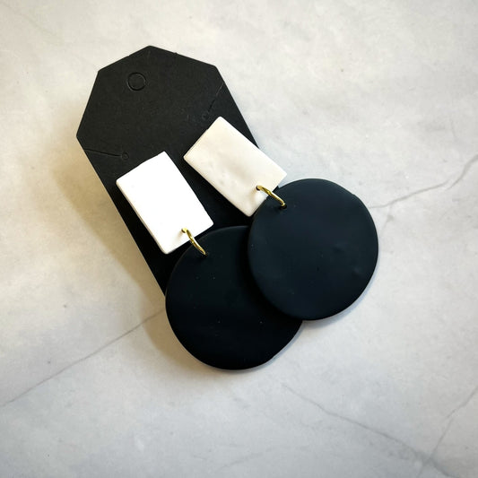White Rectangle and Black Circle Earrings