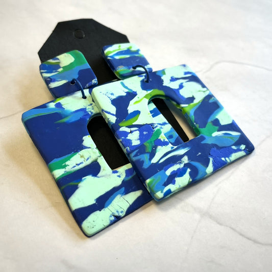 Blue Multicolor Square Earrings