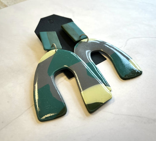 Glossy Green Arch Earrings