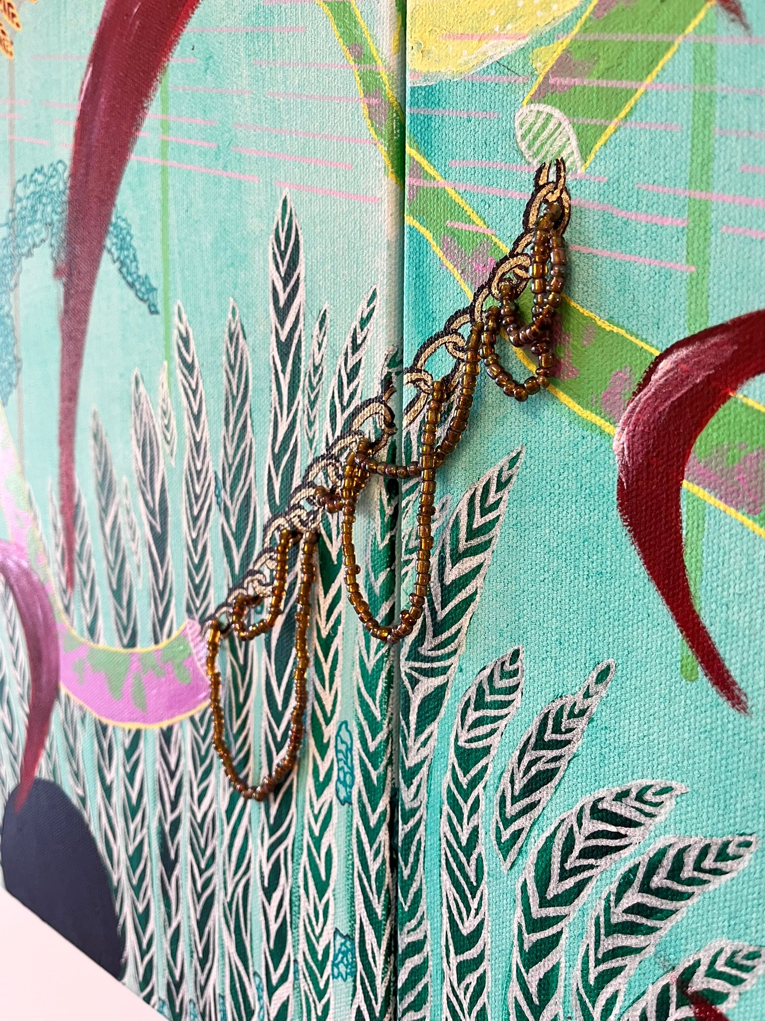The works unfold gradually, revealing structure and texture as you move through them — inviting viewers to step into that same conversation, to perceive pattern not just as design, but as language.