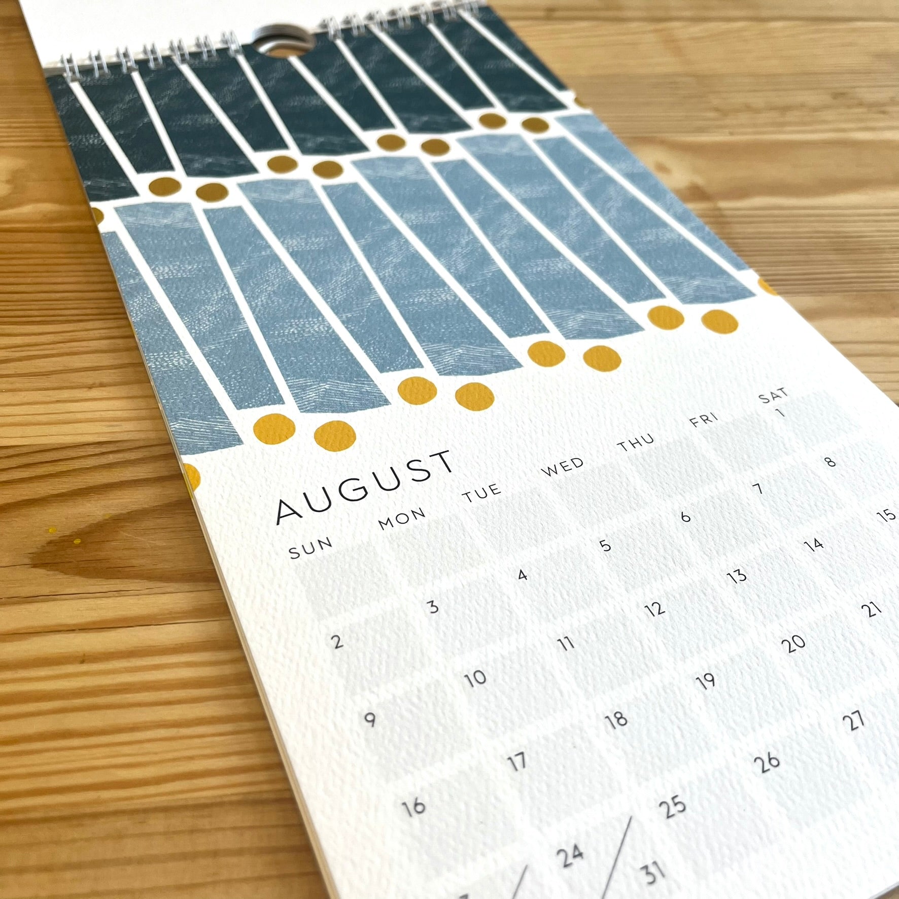 This wall calendar features 12 patterns printed on heavyweight, felt-textured, stunning paper and is spiral bound with a wire hanger for easy hanging & display.