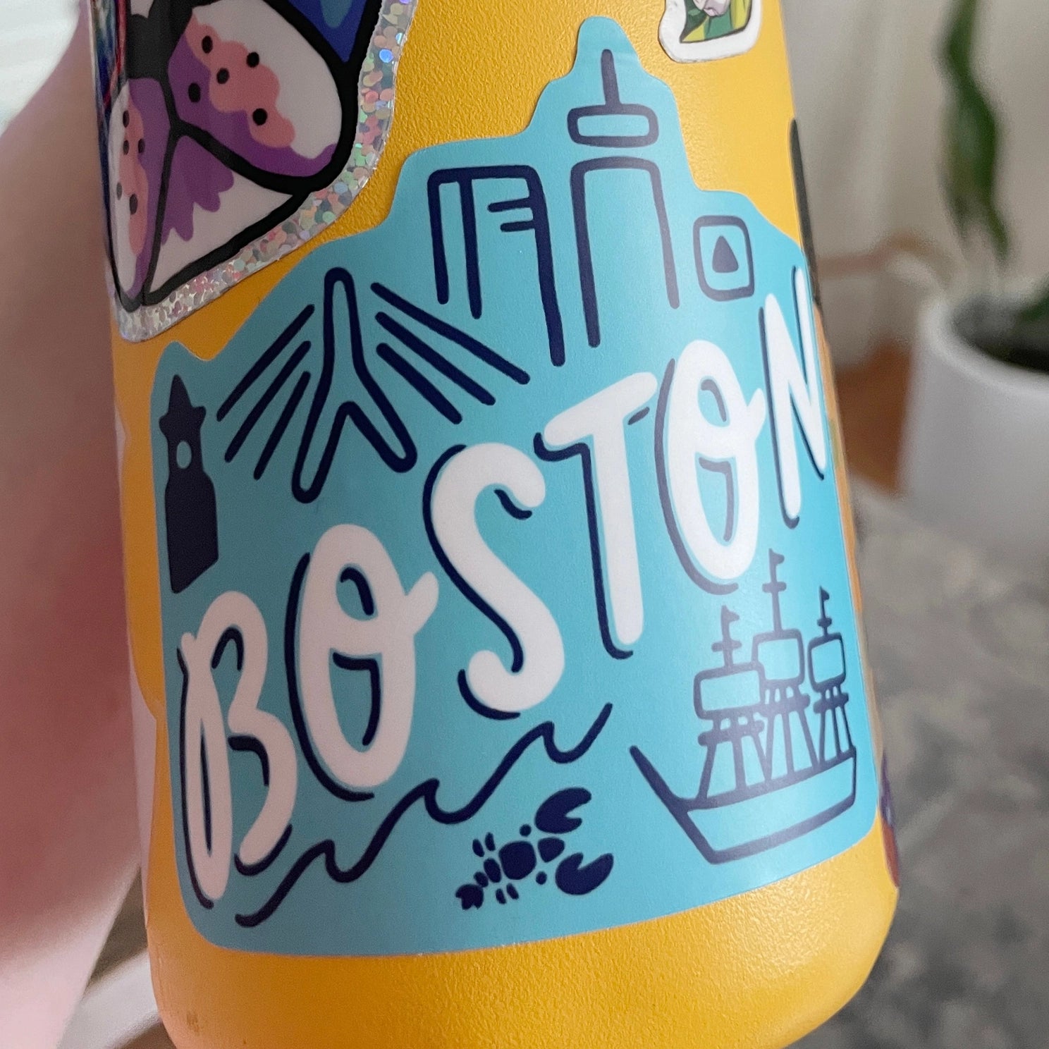 This Boston City Sticker features the Prudential Center, Citgo Sign, Zakim bridge and more! It's a high quality vinyl sticker, approximately 3" x 3" and ready for your water bottle, laptop, car window, forehead, and more!