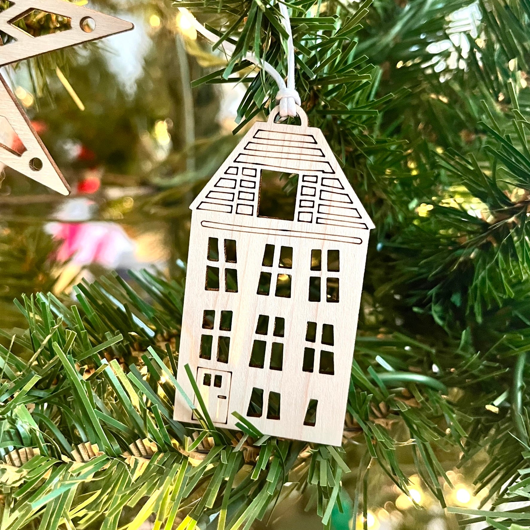 Add a touch of charm to your holiday decor with these Handcrafted Wooden House Ornaments.