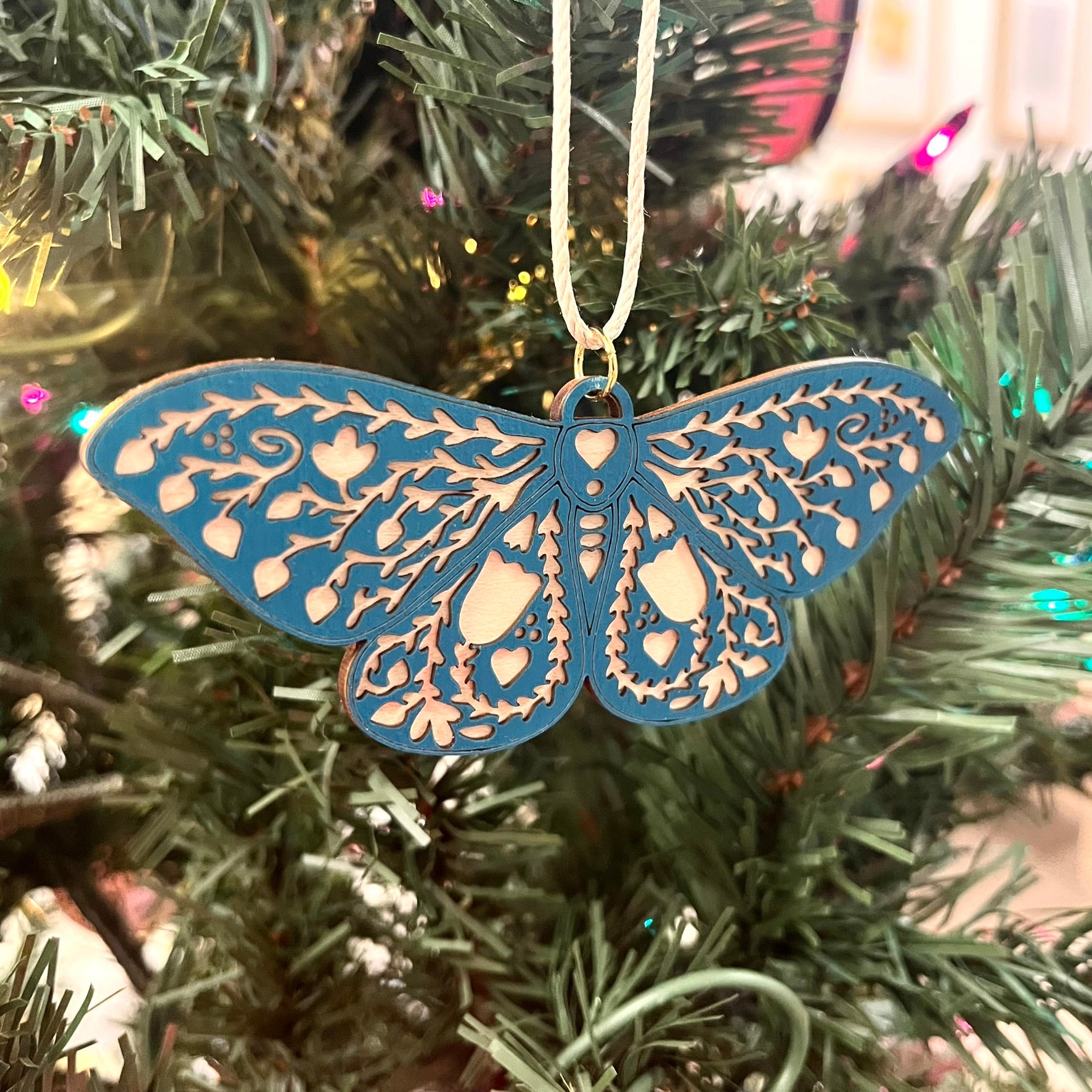 Made from sustainably sourced wood, these delicate moth/butterfly ornaments are meticulously designed and crafted in Treeline and Tide's New England studio to bring warmth and charm to any holiday setting.