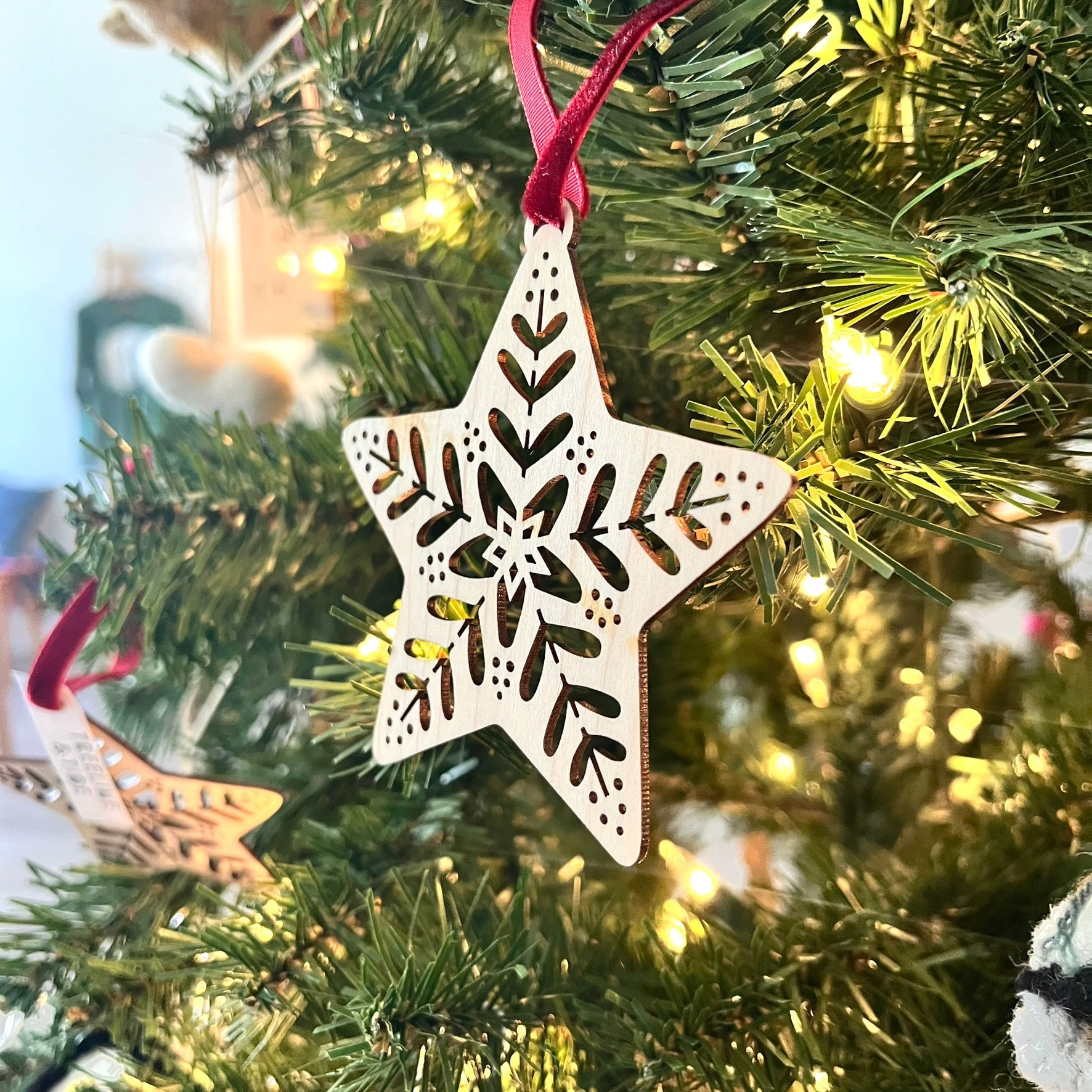 Made from sustainably sourced wood, these delicate ornaments are meticulously designed and crafted in Treeline and Tide's Maine studio to bring warmth and charm to any holiday setting.